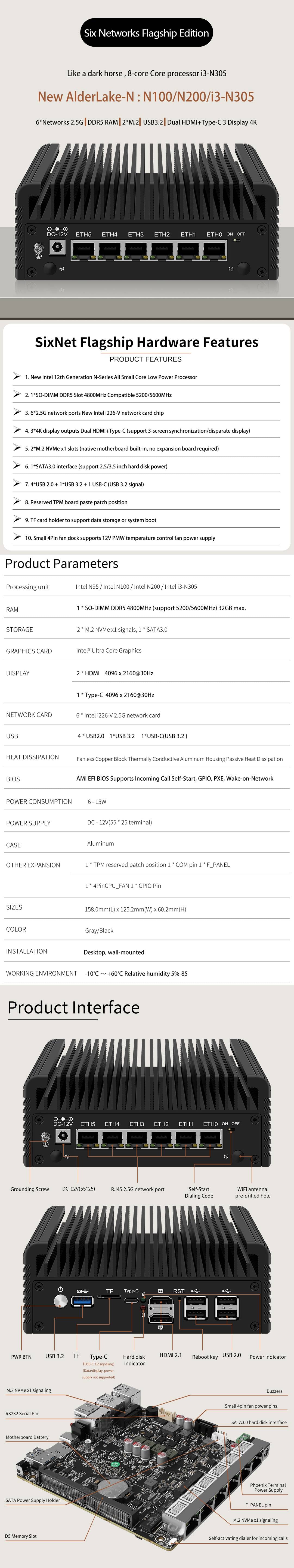 INTEL 12TH GEN I3-N305/N100 DDR5 2*NVME 2*SATA3.0 6 LAN 2.5G FANLESS MINI PC ESXI PROXMOX HOST